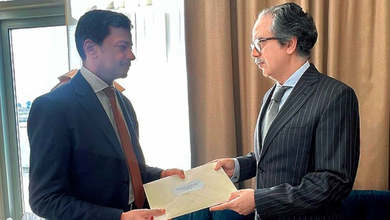 نیویارک: اقوام متحدہ میں پاکستان کے مستقل مندوب عاصم افتخار نے بھارت کی جانب سے سندھ طاس معاہدے کی معطلی کے خلاف اقوام متحدہ میں باقاعدہ احتجاجی مراسلہ جمع کرا دیا ہے۔ نائب وزیرِ اعظم اور وزیرِ خارجہ کی جانب سے بھیجا گیا یہ خط جنرل اسمبلی کے صدر کے حوالے کیا گیا، جس میں عالمی ادارے سے معاہدے کی فوری اور مکمل بحالی کا مطالبہ کیا گیا ہے۔